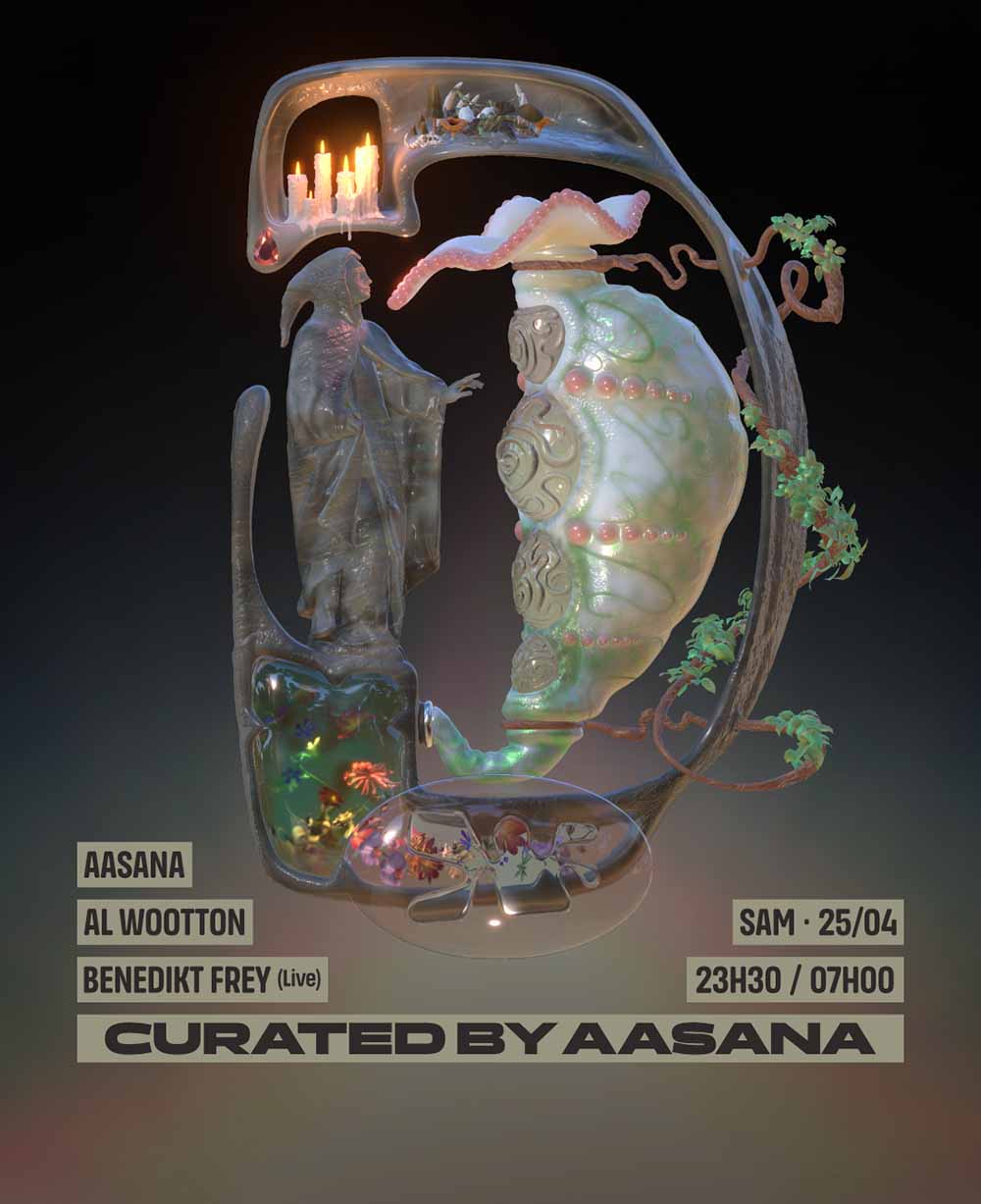 Nouveau chapitre des nuits de curation de nos résident·es, cette fois-ci c’est au tour d’Aasana de convier des artistes dont elle partage résolument la vision artistique.